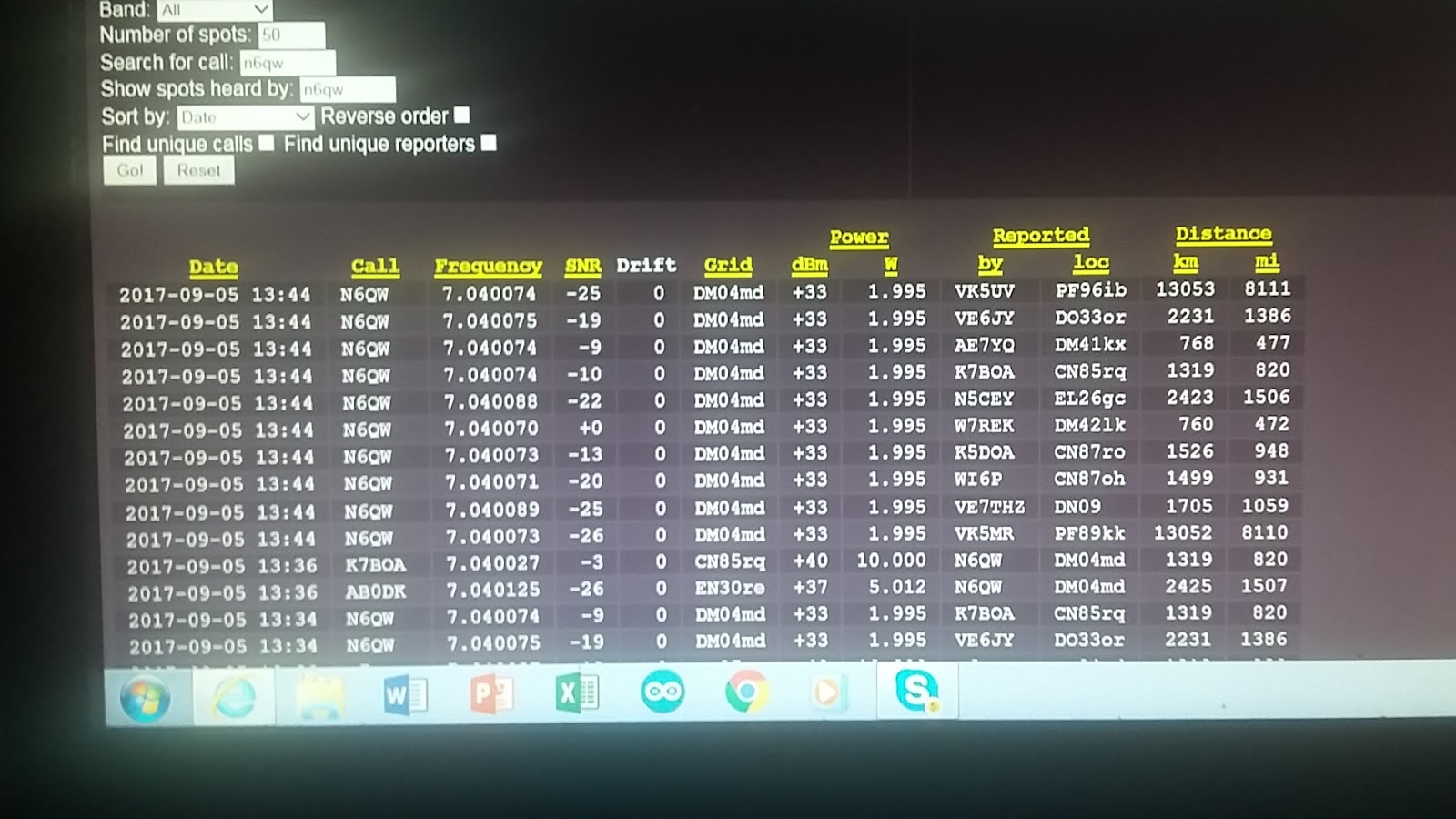 To allay any fears about building the final transceiver project for 40M where the power output is a scant 5 watts, here is a page from today's WSPR log. On and Off I fire up my SoftRock V6.3 where I was running just under two watts; but today was heard by two stations in Australia.