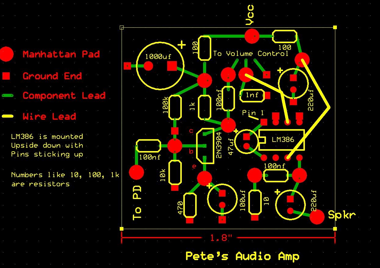 Added ExpressPCB Manhattan layout for the 2N3904/LM386 Amp. Many Thanks to Bob N7SUR