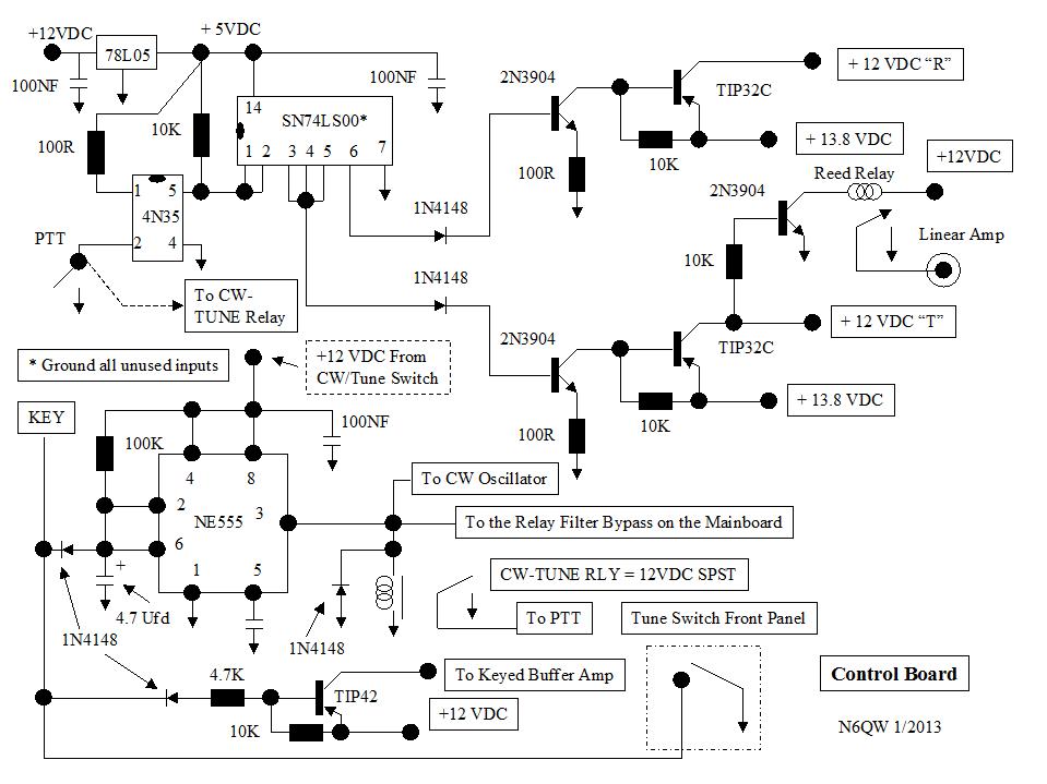 Not all of this functionality would be required but the NE555 keying circuit would form the basis of the circuit along with the voltage switching. The 4N35, SN74LS00 and switching transistors would be used in the Simpleceiver Transceiver so just being moved forward in the building queue.